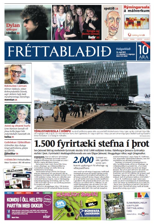 On the front cover of today’s edition of the Icelandic newspaper Fréttablaðið, there is an article about the problems that Icelandic companies are facing. In the article, it is stated that of the 6.000 small and medium-sized companies in Iceland, 1.500 will most surely go bankrupt without some action from the Icelandic government and banks. Another 2.500 companies are also facing financial difficulties, so the number could go much higher than 1.500.